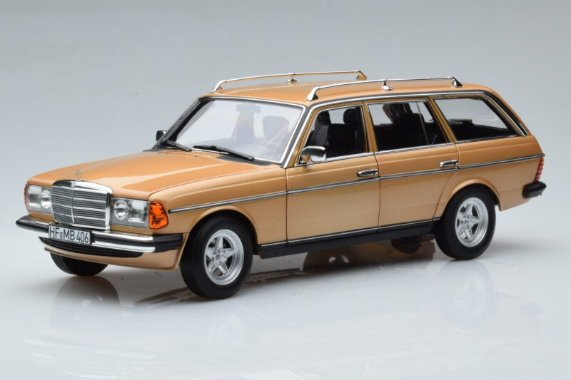 The Mercedes 200T S123 AMG Package Beež Norev 1:18 is crafted from Metall. Die-cast zinc alloy body with detailed plastic parts, rubber tires, and high-quality paint finish. Die-cast models are known for their weight, durability, and realistic feel.