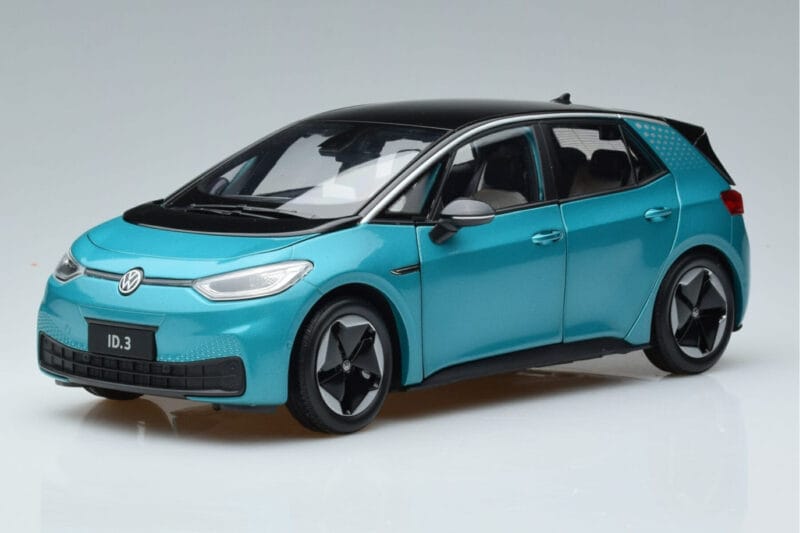 The Volkswagen ID.3 Roheline FAW 1:18 is crafted from Metall. Die-cast zinc alloy body with detailed plastic parts, rubber tires, and high-quality paint finish. Die-cast models are known for their weight, durability, and realistic feel.